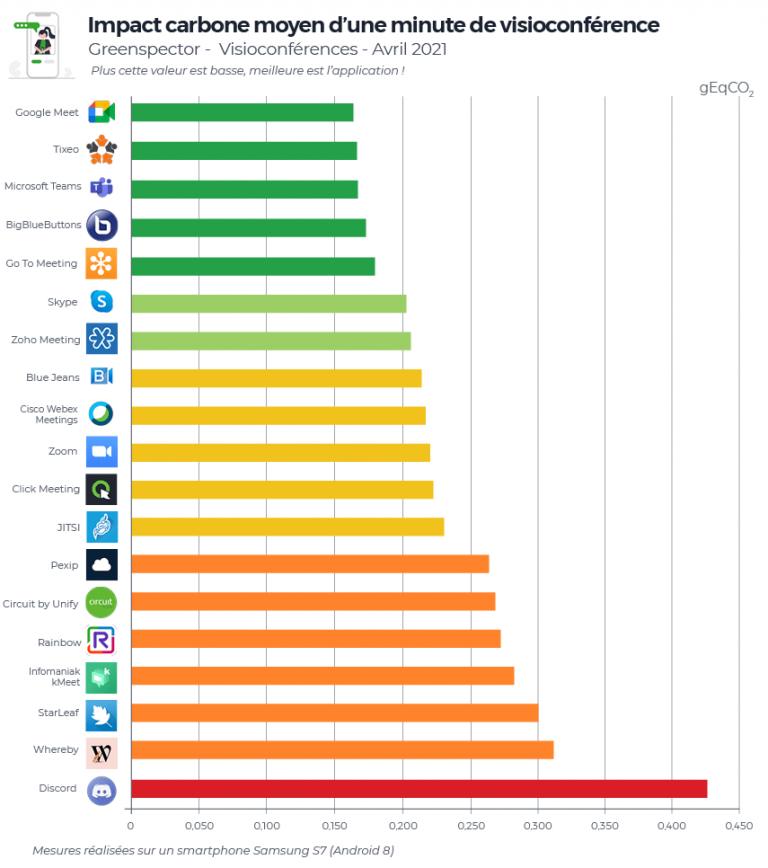 La bonne nouvelle ? Selon une étude réalisée par Greenspector, Google Meet est l’application du marché ayant l’impact carbone le moins important !